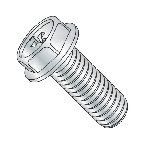 1/4-20 x 1 1/4 Phillips Indented Hex Washer Machine Screw Fully Threaded Zinc
