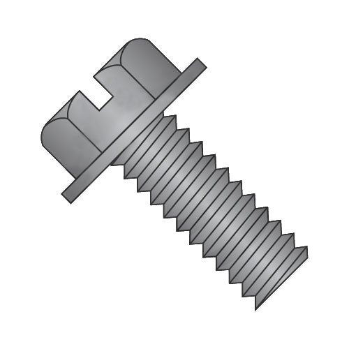 1/4-20 x 1/2 Slotted Indented Hex Washer Head Machine Screw Fully Threaded Black Oxide