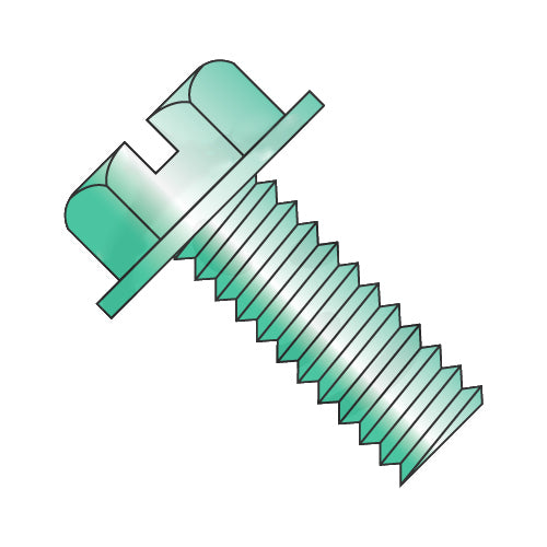 6-32 x 3/8 Slotted Indented Hex Washer Head Machine Screw Fully Threaded Zinc and Green