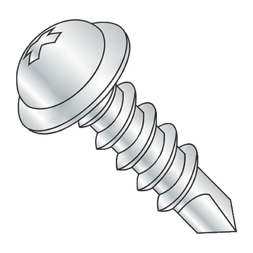 8-18 x 1 1/4 Phillips Round Washer Head Self Drilling Screw Full Thread Zinc
