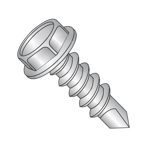 1/4-14 x 4 Unslotted Indented Hex Washer Full Thread Self Drill Screw 410 Stainless Steel