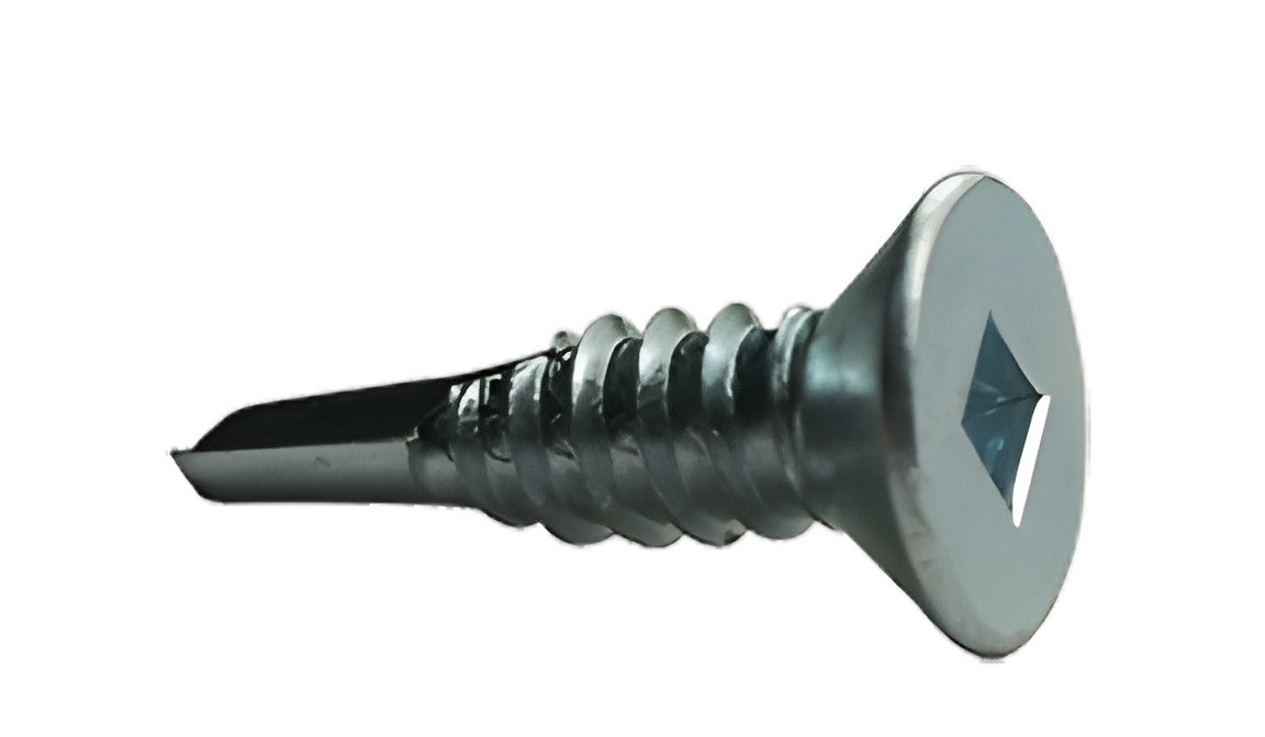 8-18 x 3/4 Square Drive Flat Head Fully Threaded Self Drilling Screw Zinc & Bake